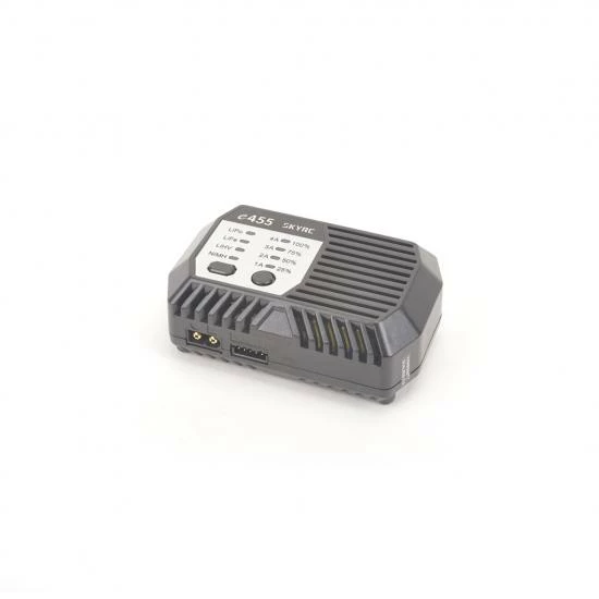 SkyRC e455 Charger is an economical, high-quality, universal 100-240V AC balance charger designed for charging LiPo, LiFe, and LiHV batteries from 2-4 cells in balance mode. It can also charge 6-8S NiMH batteries. The circuit power is 50W, and the max charge current can reach 4A.