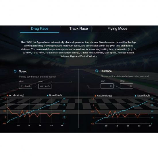 GNSS Performance Analyzer(GSM020) allows you to measure and analyze many aspects of your RC car & airplane’s performance using the latest GNSS engine (GPS, GLONASS) which gives you Acceleration, G-force, Speed, Time, Distance, High and Vertical Velocity. With its compact dimension of 40mm x 40mm x 17mm and internal antenna, it is an ideal choice for mounting on RC vehicles & airplanes.